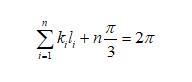 假設(shè)二維干泡沫中的任一氣泡如圖3b所示,氣泡的邊數(shù)為n,從a點(diǎn)開(kāi)始,再回到a的邊長(zhǎng)分別標(biāo)記為l1到ln,每邊所對(duì)應(yīng)的曲率為k1到kn(Plateau第一定律)。現(xiàn)在假設(shè)有一點(diǎn)從a點(diǎn)沿著邊向b運(yùn)動(dòng),到b點(diǎn)時(shí),所走的路徑為l1,轉(zhuǎn)動(dòng)的角度為這條邊所對(duì)應(yīng)的圓心角(向外為正,向內(nèi)為負(fù)值),為k1*l1。此時(shí)要想繼續(xù)沿著邊運(yùn)動(dòng),需要向內(nèi)轉(zhuǎn)動(dòng)π/3角度(根據(jù)Plateau第二定律),如圖3b所示。轉(zhuǎn)動(dòng)后繼續(xù)運(yùn)動(dòng),直到到達(dá)原來(lái)的點(diǎn)a。此過(guò)程,n條邊總共在頂點(diǎn)處轉(zhuǎn)動(dòng)的角度為nπ/3,在邊上轉(zhuǎn)動(dòng)的角度為