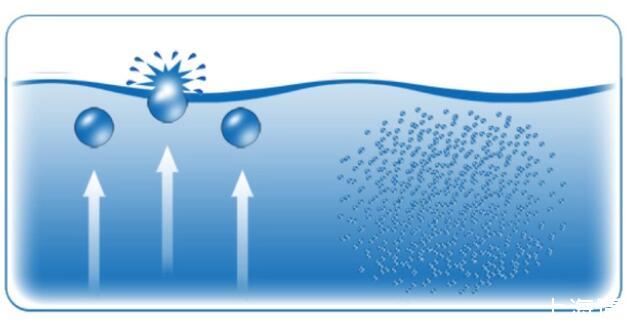 理論上氣泡形成消耗能量依賴于界面面積,界面面積決定于氣泡表面張力。直徑小于25微米的小氣泡表面剛性強,類似于高壓氣球,不容易破裂。數(shù)毫米直徑的大氣泡表面比較柔軟,很容易變形破裂。大氣泡的浮力比較大很容易上升到液面。Stokes公式R=ρgd2/18μ(ρ=密度,g=重力加速度,d=氣泡直徑,μ=粘滯度)可計算氣泡上浮速度。氣泡上漂浮速度和氣泡直徑的平方成正比,這種關(guān)系只使用于小氣泡。直徑大于2毫米的大氣泡由于外形發(fā)生變化,上升速度并不會受直徑影響。低于1微米的納米氣泡上升速度非常慢,遠低于布朗運動,整體上表現(xiàn)為不上升。