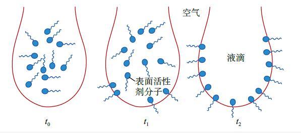 圖4表面活性劑分子在液滴上的遷移排布示意圖