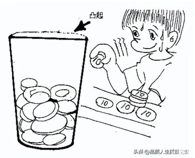 表面張力的實驗:這個實驗,也可以說是一個關(guān)于表面張力的小游戲。先找一個朋友和你一起來進行這個游戲,然后準備一杯水(把水加到杯子的邊緣處,目視水至杯口齊平處),16枚1元的硬幣(也可以更多)。然后是這個游戲的規(guī)則,和朋友每人一次向杯子里輪流投放硬幣,每次投放硬幣數(shù)沒有限制,可以一次放進1枚,可以2或3枚,或者更多,直到誰先把水溢出杯子為止。投放硬幣的時候用拇指和食指捏住硬幣輕輕的放進盛滿水的杯子。本人最多一次投放了16枚1元硬幣。呵呵,好的大家去試試吧。