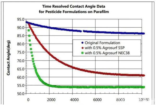 農(nóng)藥中加入表面活性劑可以降低液體的表面張力提高潤濕分散性能