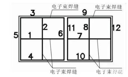 圖1后艙管理裝置下組件結構及電子束焊縫位置示意圖